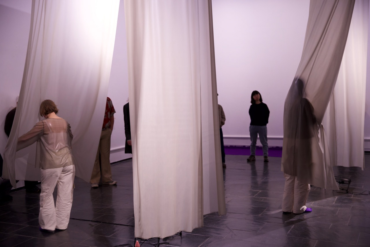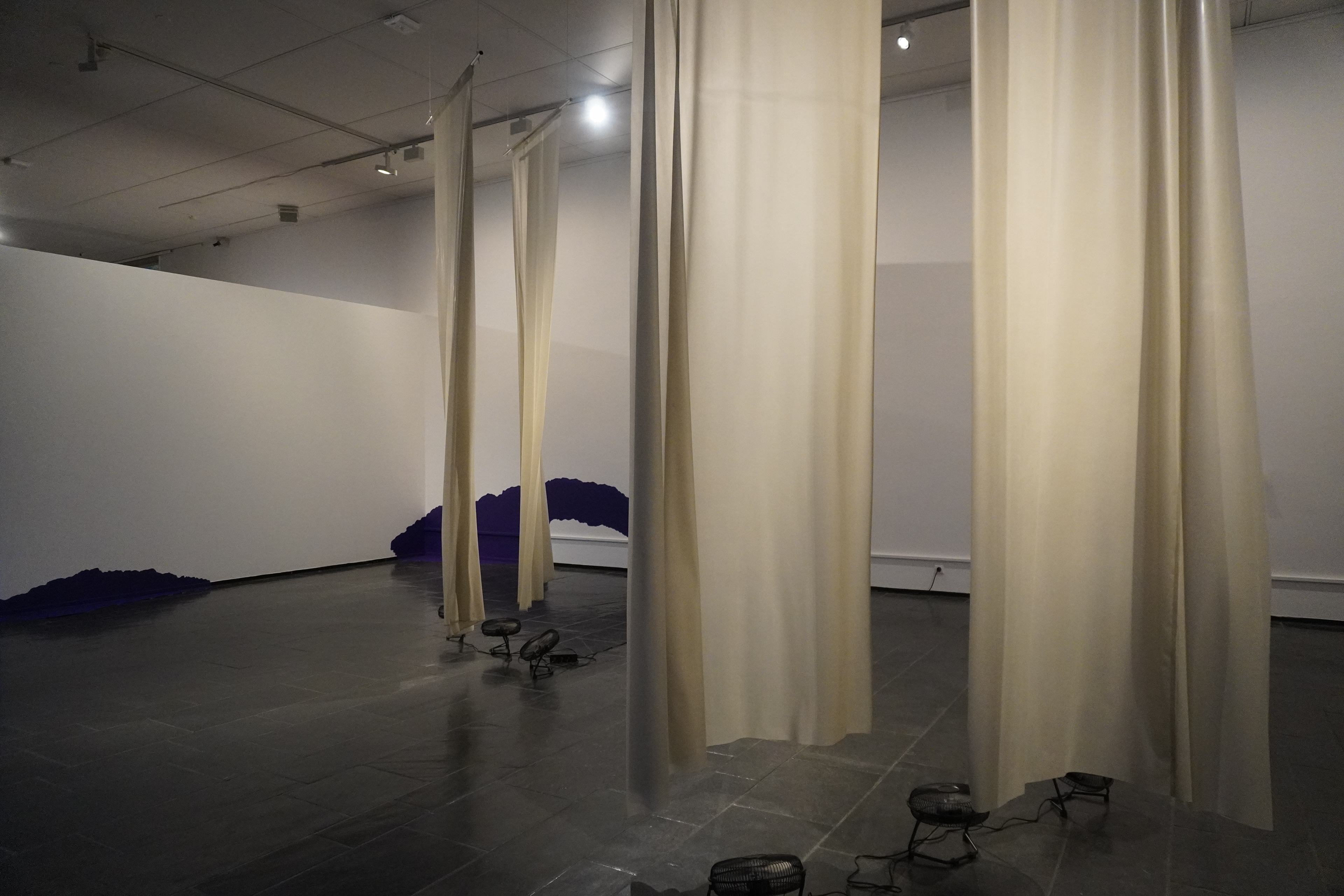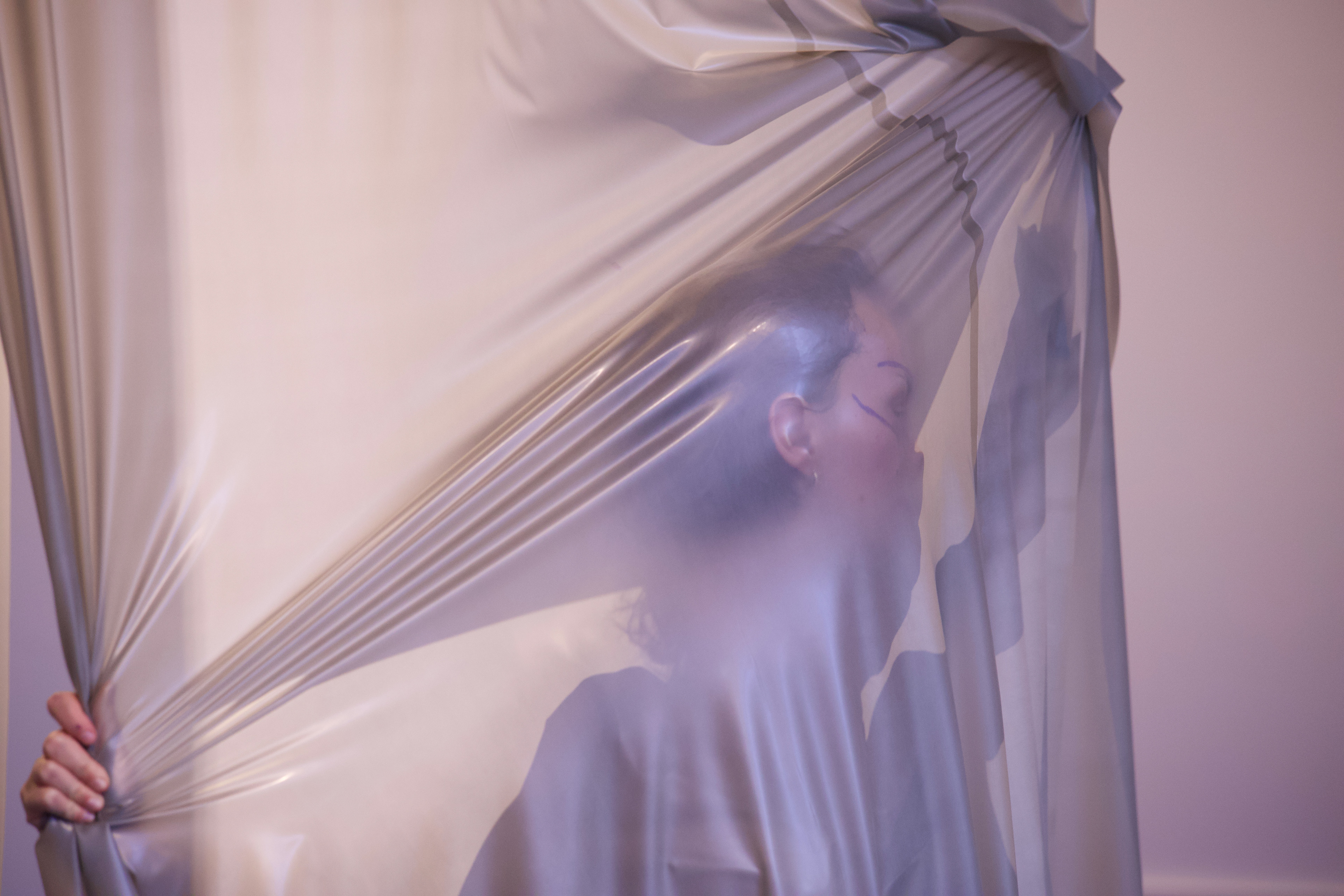 Latex som material, ljudlandskap, flyktighet och till filosofiska tankar blir utställt.
